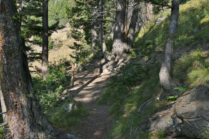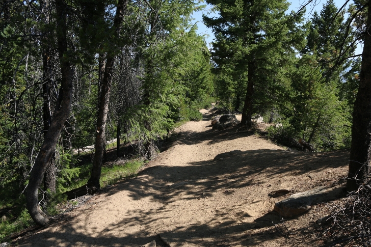 The trail starts on level ground.