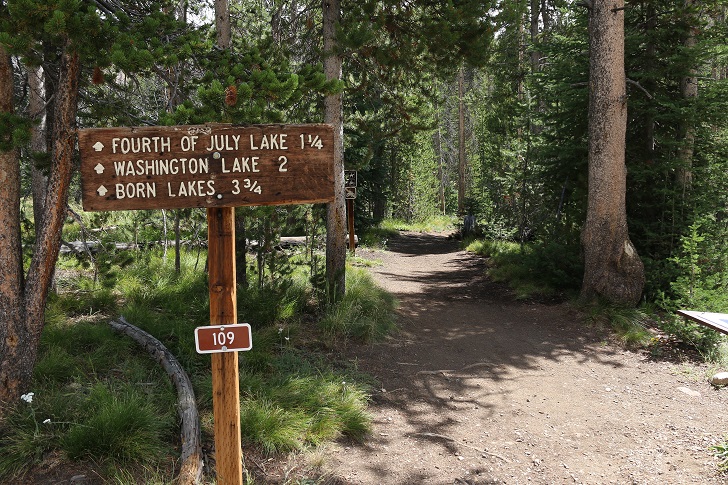 The elevation at the trailhead is 8760 feet with the pass between Fourth of July Lake and Washington Lake at 9550 feet.