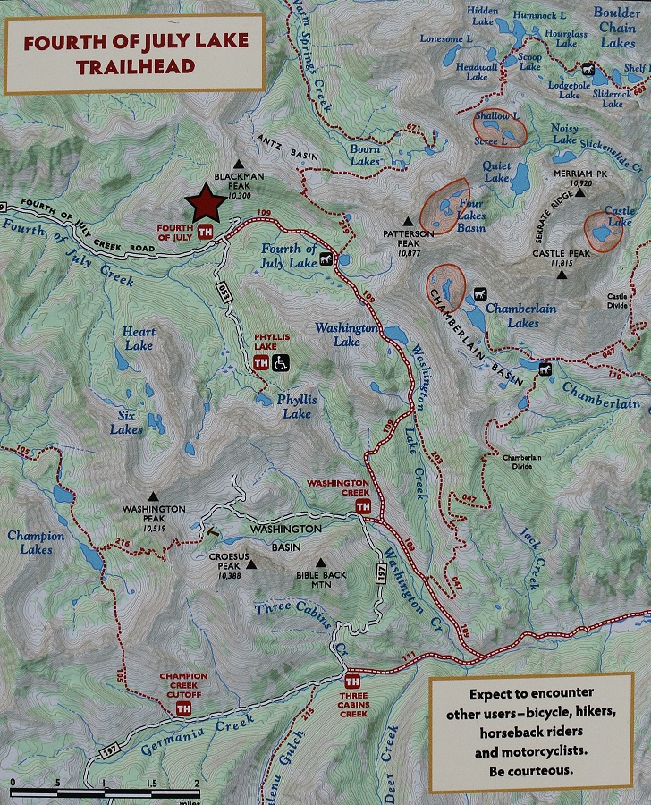 Fourth of July Creek wanders about the valley and you will cross it more than once but it's small. Portions of this trail are very enjoyable and Fourth of July Lake is quite nice.