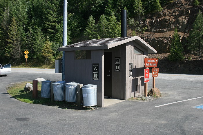 The vault style outhouse was very clean and there are garbage can for your use.